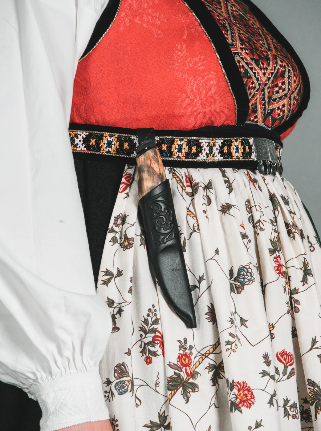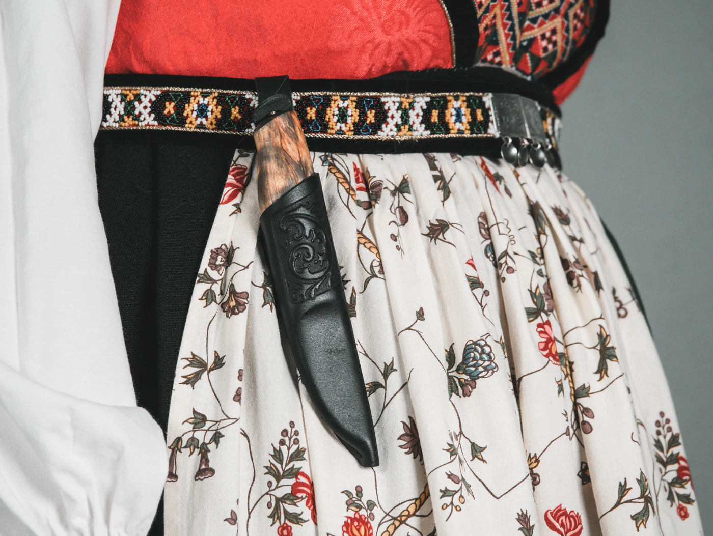 Dersom du har en bunad hvor du fester bunadskniven med knapp, så kan du lage et snitt på baksiden av hempen for å henge kniven på knappen.