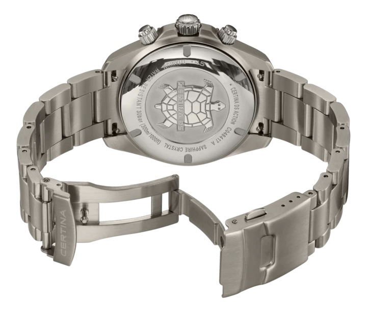 Certina DS Action Chrono er en imponerende klokke som kombinerer sporty design med høy ytelse, perfekt for den aktive mannen som verdsetter både stil og funksjonalitet.