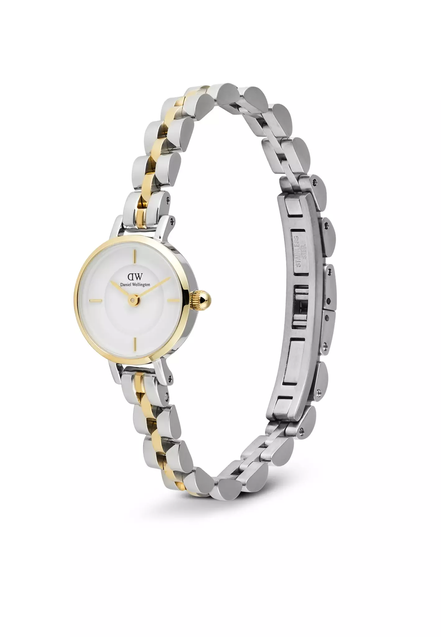 Petite Mini Arch 3-Link Two Tone Gold fra Daniel Wellington er en liten og elegant klokke med et rolig, feminint uttrykk.