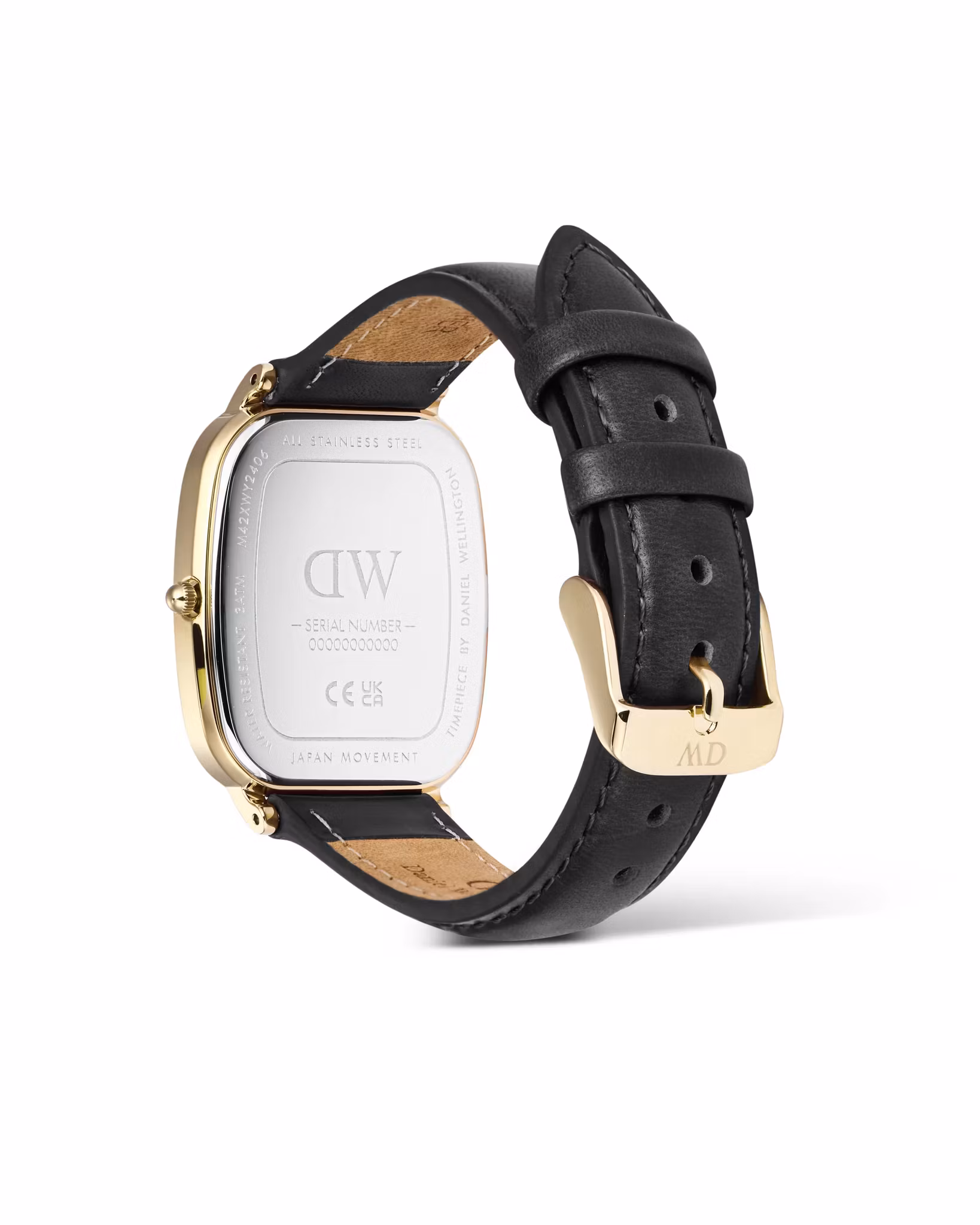 Med en 36,5 x 32 mm urskive i en subtil champagnefarge og en vintage sort lærrem, gir klokken et sofistikert og tidløst uttrykk.