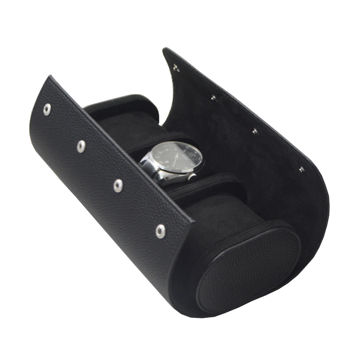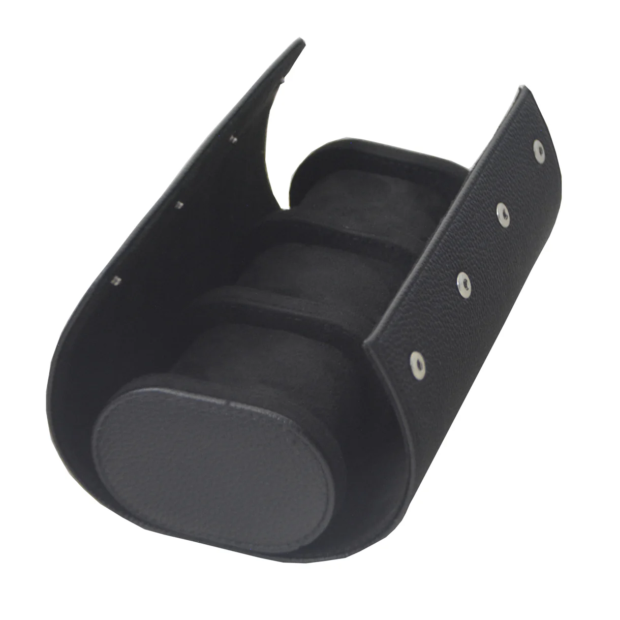 Kompakt og slitesterk klokkeboks, utviklet for sikker oppbevaring av klokker under reise. Klokkeboksen er utstyrt med 3 myke puter som holder klokkene stabile og beskytter mot riper og støt. Det sorte PU yttermaterialet gir et elegant og eksklusivt uttrykk.